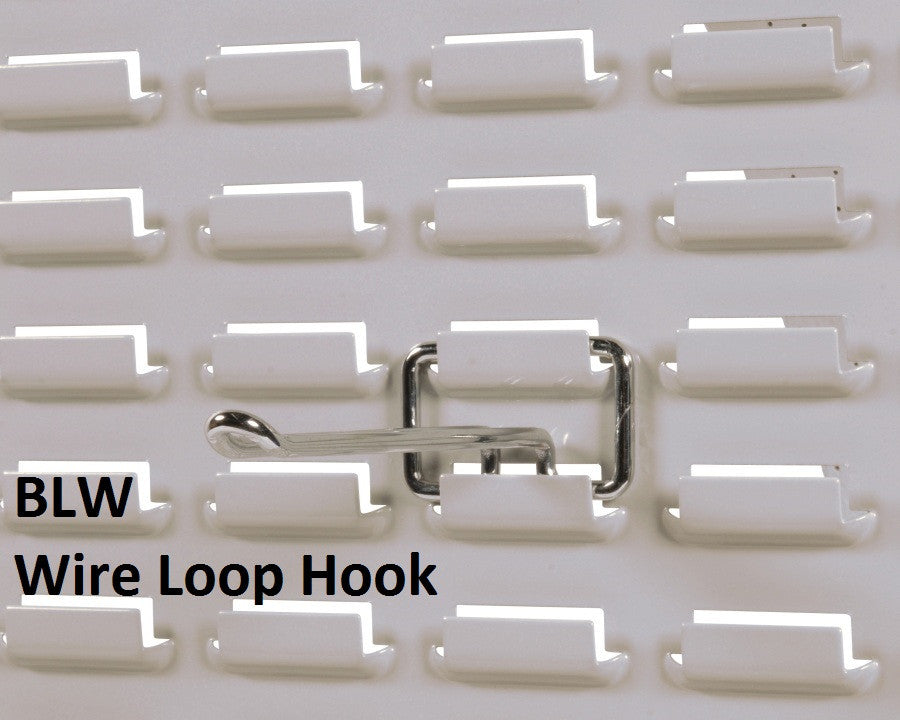 The BLW Wire Loop Hook for louver panels is 6” long and chrome plated. The recommended Safe Working Load is 15 lbs uniformly distributed. This hook is ideal for storing and displaying packaged products and difficult to store items such as belts and cables.